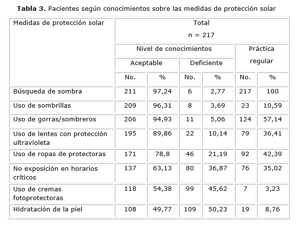 Conocimientos sobre fotoprotección en Consulta Dermatológica de Guinea Bissau