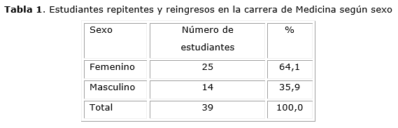 El universo estuvo constituido por la totalidad de estudiantes que solicitaron formalmente la repitencia o el reingreso en el curso 2024 (n = 39), tratándose de un estudio censal sin muestreo. Sin embargo, hubo 56 estudiantes que suspendieron alguna asignatura en el primer periodo del curso 2024 o causaron baja por inasistencia, pero que no todos constituían población elegible para el objetivo del estudio. Se incluyeron en la investigación aquellos estudiantes que solicitaron su repitencia o reingreso a la carrera de Medicina y autorizaron su participación mediante la firma del consentimiento informado. Se integraron en el análisis de los resultados los estudiantes repitentes y reingresos, pues ambos suspendieron las asignaturas del primer periodo del 2024, solo se diferencia en la cantidad (repitentes suspendieron una o dos asignaturas, y el reingreso tres o más), lo que constituye una limitación interpretativa.
