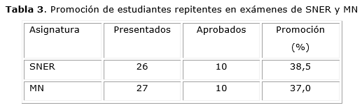 evaluation was conducted on 26 first-year repeating students and 13 possible